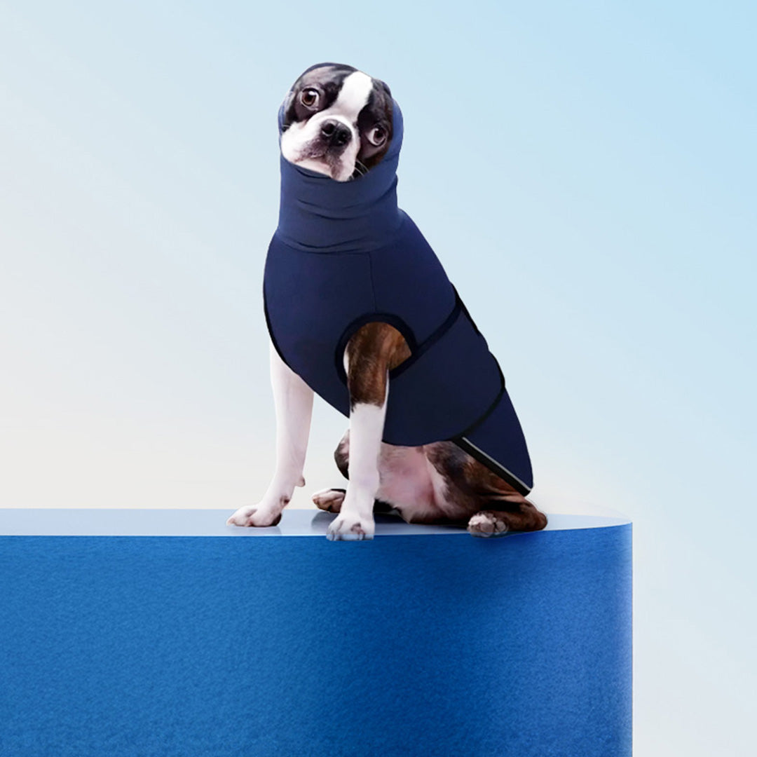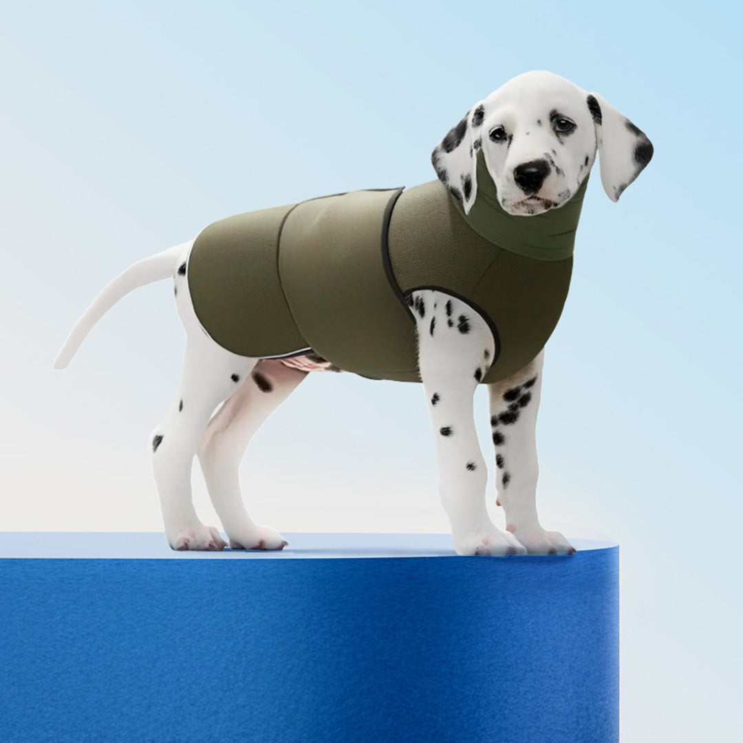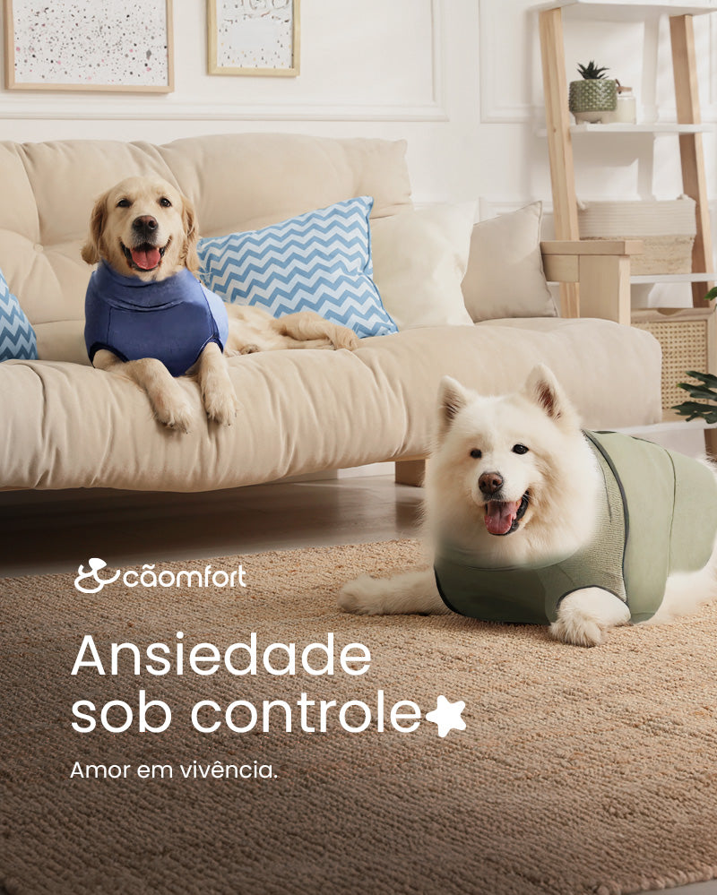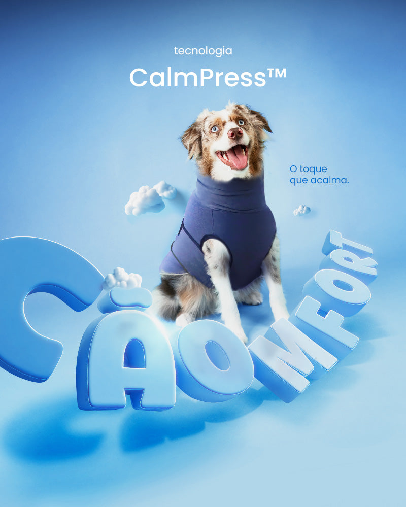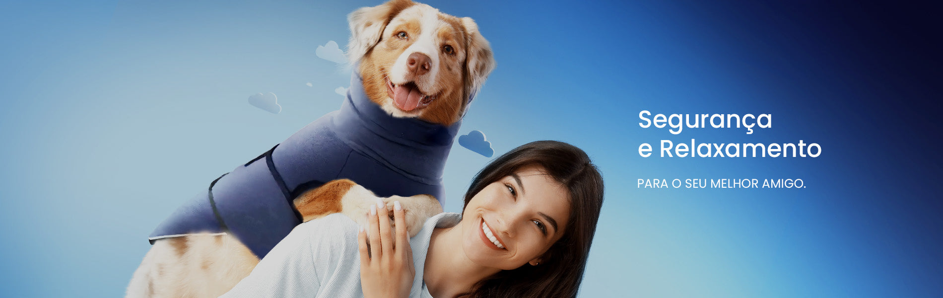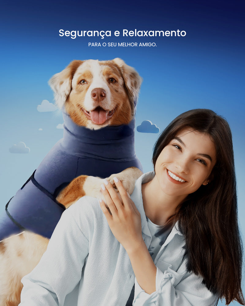 A compressão suave aplicada sobre o corpo do cão promove um efeito calmante, como se o tutor estivesse segurando ou abraçando o pet de forma constante.